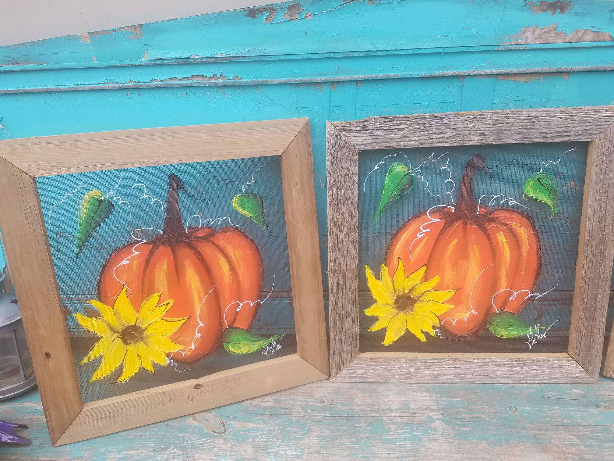 Sunflower And Pumpkins Paintings Window Screen Painting Fall Etsy